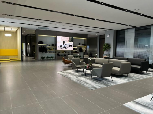 走過這道時(shí)光廊,便正式進(jìn)入了深圳路特斯中心的展廳。整個(gè)展廳明亮簡(jiǎn)約但又充滿了細(xì)節(jié)的雕琢,隨處可見路特斯標(biāo)志性的黃色元素。