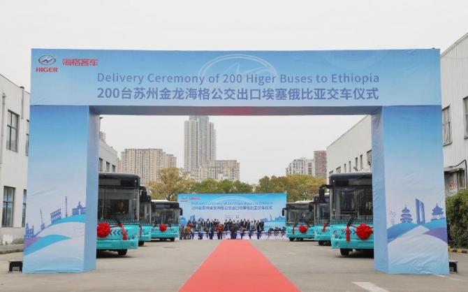 3月,200輛蘇州金龍海格豪華公交車正式出口埃塞俄比亞。該批車主要用于改善亞的斯亞貝巴人民的出行,助力當(dāng)?shù)毓步煌ㄋ教嵘?/p>