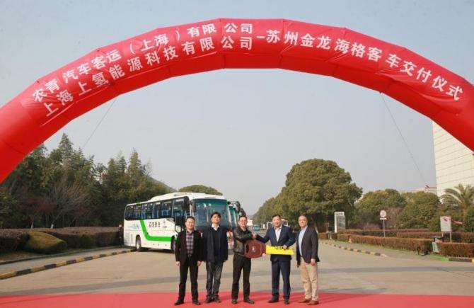 今年1月,批量蘇州金龍海格氫燃料電池客車正式交付農(nóng)青汽車客運(yùn)(上海)有限公司。