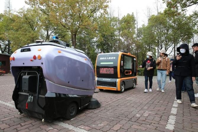 3月31日,2023年第32屆江蘇(常熟)尚湖牡丹花會(huì)開幕,蘇州金龍海格汽車研發(fā)的無(wú)人售貨車、無(wú)人清掃車,向游客們展示了“無(wú)人駕駛”的前沿科技。