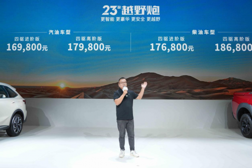 2023款越野炮增配不加價(jià),汽油車型官方指導(dǎo)價(jià)16.98萬(wàn)元-17.98萬(wàn)元,柴油車型官方指導(dǎo)價(jià)17.68萬(wàn)元-18.68萬(wàn)元。同時(shí),感恩新老用戶的支持與厚愛(ài),越野炮上市3周年,特別推出23款越野炮限量版,首批333臺(tái),汽油限量版車型售價(jià)19.98萬(wàn)元、柴油限量版車型售價(jià)20.68萬(wàn)元。購(gòu)車用戶尊享“金融禮、置換禮、互聯(lián)禮、服務(wù)禮、推薦禮”五重大禮,333臺(tái)限量版用戶還額外享受價(jià)值3000元的戶外露營(yíng)禮包。2023款火炮官方指導(dǎo)價(jià)18.28萬(wàn)元,用戶通過(guò)長(zhǎng)城炮APP即可訂購(gòu),購(gòu)車尊享金融禮和服務(wù)禮。