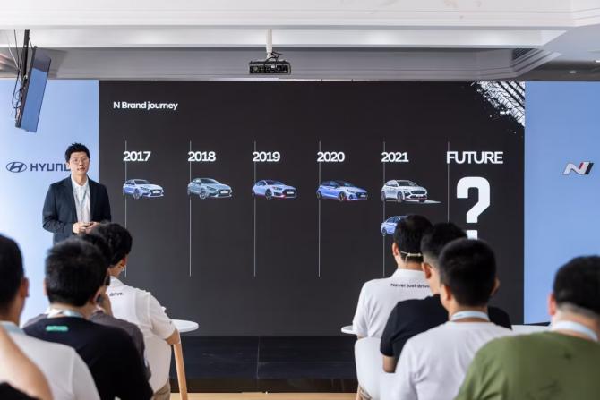 現(xiàn)代汽車高性能N品牌事業(yè)戰(zhàn)略部部長黃載憲對N品牌進(jìn)行了深入全面的講解
