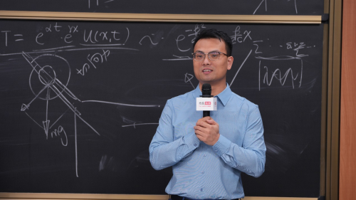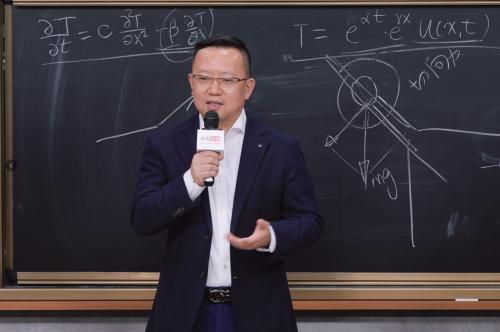 課堂上,張朝陽不僅通過經(jīng)典振動方程與量子力學(xué)結(jié)合,從固體物理角度講解了量子化的“聲音”——聲子,而且通過方程式推導(dǎo)出全新天籟車內(nèi)搭載的ANC主動降噪系統(tǒng)(Active Noise Cancellation system)的工作原理,即兩個振動的疊加就會使得行駛中的車內(nèi)環(huán)境噪聲的振動趨于零。就像是拔河,噪聲往左、反向聲波就往右,噪聲向上、反向聲波就向下,這樣就可以抵消噪聲對人的影響,從而達(dá)到了主動降噪的功能。