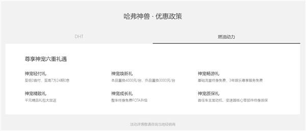 最后,現(xiàn)在選購哈弗神獸,還可享受哈弗官方提供的至低0首付、至高7萬24期0息,本品牌置換4000元/臺、外品牌置換3000元/臺,首任車主發(fā)動機、變速箱核心零部件終身質(zhì)保、整車終身免費FOTA升級等權(quán)益在內(nèi)的尊享神寵六重禮遇,與哈弗神獸一起,追尋更多美好。