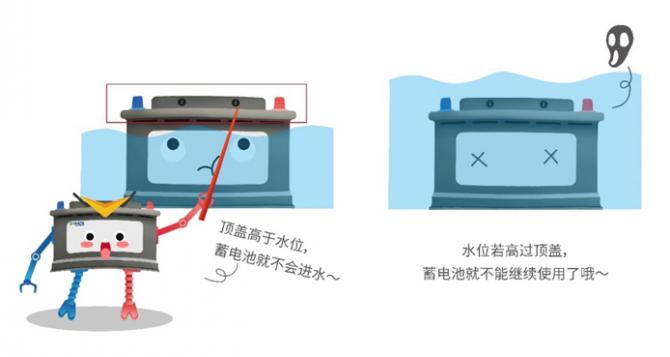 如果您的車輛配備的是普通富液蓄電池,則需要判斷水位是否沒過蓄電池頂蓋,如果水位低于蓄電池頂蓋,那么蓄電池沒有進水風險。如果水位沒過頂蓋,則建議更換蓄電池。因為蓄電池頂蓋有排氣孔,泡水后積水會順著排氣孔進入到蓄電池內部?;祀s著各種金屬以及微量元素的積水會導致蓄電池短路并造成電解液被稀釋,對蓄電池的性能和壽命有很大影響,且存在極大安全隱患,建議及時更換全新的蓄電池。