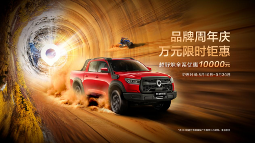 此次長城炮品牌周年慶——越野炮全系萬元限時鉅惠持續(xù)到9月30日,以最大化誠意回饋用戶,再次展現(xiàn)長城炮篤行“以用戶為中心”,攜手用戶暢享全場景皮卡車生活的滿滿誠意。