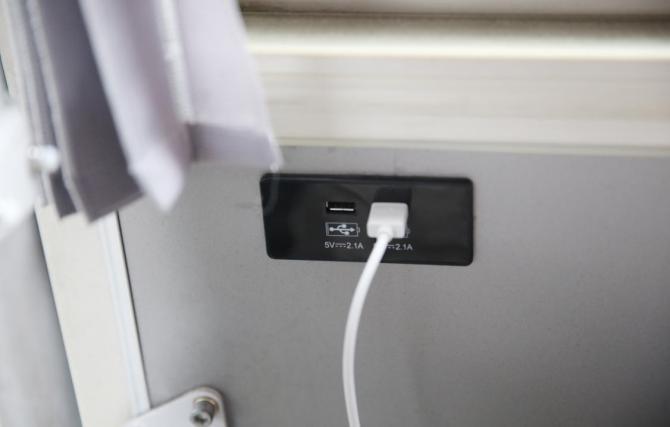 從始發(fā)站青芝塢上車,可以發(fā)現(xiàn)這一路的乘客真不少。線路采用的蘇州金龍微巴型號(hào)是KLQ6650GEV。這款車長(zhǎng)僅6.53米、寬2.1米,轉(zhuǎn)彎及通過(guò)性良好,且小小車身,最大載客數(shù)卻達(dá)三四十人,可以滿足線路高峰期快速高效承載需求。走進(jìn)車內(nèi)可以感受靜謐的舒適體驗(yàn)感,綠色純電動(dòng)車噪音小的優(yōu)勢(shì)體現(xiàn)淋漓盡致。整個(gè)車內(nèi)空間寬敞不擁擠,座椅暖心舒適讓人身心愉悅,車座旁還有貼心USB充電口,讓你絲毫不用擔(dān)心手機(jī)電量不夠用。