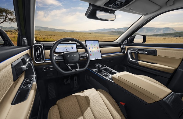 顏值方面,探索06為用戶打造了精致悅野造型,從內(nèi)到外帶來更舒適的“悅野”新體驗。矩陣迷宮探野前格柵搭配時空破曉天際線日行燈,組成硬派勁野前臉,輪廓簡潔硬朗,十分有氣勢。尾部采用貫穿式星河耀目LED尾燈,搭配同級最寬輪眉到側(cè)窗長度,與硬派機甲高能后保,營造出精致與力量兼容的氣質(zhì),讓人一眼難忘。未來超感內(nèi)飾設(shè)計帶來精致體驗,實現(xiàn)與未來的全面連接。