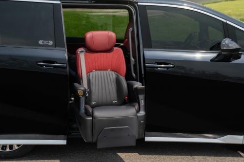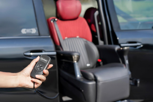 福祉座椅位于二排右側(cè),可通過(guò)遙控器或手機(jī)藍(lán)牙操控座椅電動(dòng)升降,將座椅旋轉(zhuǎn)、伸出車外,并降低高度,方便與輪椅點(diǎn)對(duì)點(diǎn)接駁,陪護(hù)人告別了靠摻、扶、抱、背等方式上下車的困擾,人性化設(shè)計(jì)滿分。