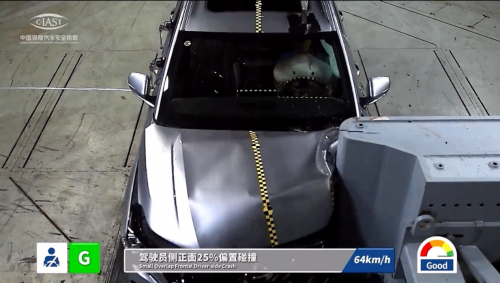 (中保研駕駛員側(cè)正面25°偏置碰撞氣囊與氣簾展開畫面)