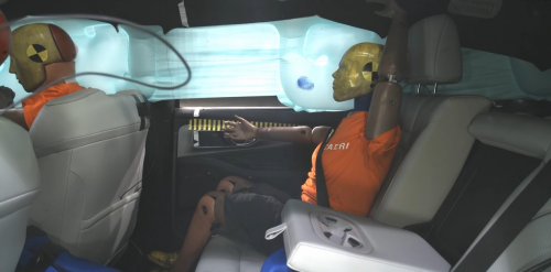 (研發(fā)過程副駕側(cè)正面25°偏置碰撞測試二排氣簾展開畫面)