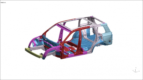 (紅色:熱成型鋼;桃紅色:超高強(qiáng)度鋼;灰色:高強(qiáng)度鋼;綠色:七系鋁合金)