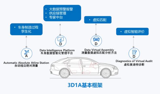 3D中的第一個D是車身數(shù)據(jù)智能管理平臺,包括大數(shù)據(jù)分析、供應(yīng)鏈管理以及專家中臺;第二個D是在車身數(shù)字化的基礎(chǔ)上進(jìn)行虛擬匹配;第三個D是虛擬Audit,對虛擬裝配的車身以用戶挑剔的眼光進(jìn)行智能分析。