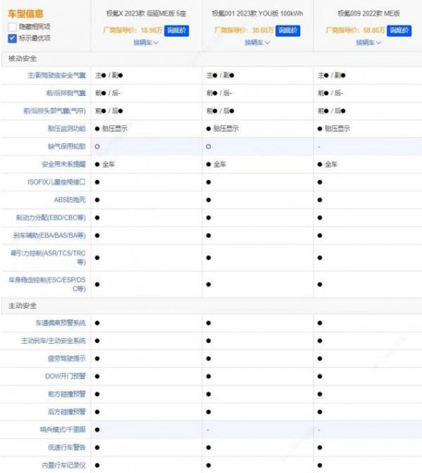作為一家用戶型企業(yè),安全一直是極氪造車的重中之重,從源頭SEA浩瀚架構(gòu),到后續(xù)的高科技配置,極氪的每一款車都武裝到了牙齒,從配置表看,無論是價(jià)位18.98萬的最低配極氪X還是高達(dá)58.8萬的極氪009,安全配置全部是拉滿的。