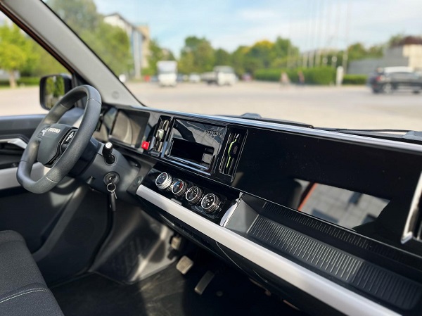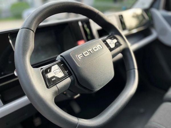 進(jìn)入車內(nèi),中控部分同樣采用了分層布局,塑質(zhì)材料紋路細(xì)膩,輔以鋼琴烤漆面板和銀色啞光鍍鉻點(diǎn)綴,簡(jiǎn)潔的設(shè)計(jì)語(yǔ)言向乘用化看齊。值得注意的是,該車內(nèi)飾多選用環(huán)保材料,從一定程度上反映出福田祥菱綠色、健康的造車?yán)砟钆c追求。