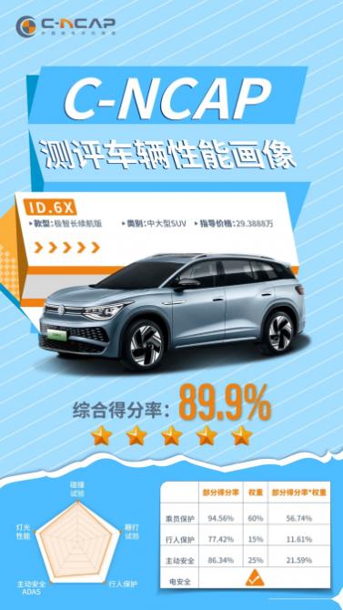 除此之外,大眾ID6X還拿下了C-NCAP“五星級(jí)”安全評(píng)級(jí),參與評(píng)選的上汽大眾新能源車(chē)ID6X極智長(zhǎng)續(xù)航版,在乘員保護(hù)方面,獲得了今年C-NCAP已公布SUV車(chē)型成績(jī)中的最高分。這一數(shù)據(jù),再次證實(shí)了上汽大眾新能源車(chē)ID6X出色的安全防護(hù)力。