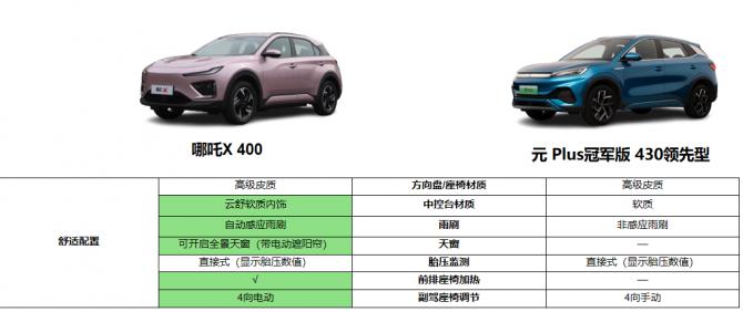 在消費者關(guān)心的舒適性方面,哪吒X帶來了豐富的舒適配置,比如超80%的內(nèi)飾軟包覆,大大提升了車輛的品質(zhì)感,可開啟全景天窗,并且?guī)щ妱诱陉柡?,讓后排視野更開闊,同時也帶來了不錯的私密性,此外,哪吒X的前排座椅支持加熱,副駕支持4向電動調(diào)節(jié),日常用車更為便利。比亞迪元Plus沒有天窗,前排座椅不支持加熱,副駕座椅也僅僅支持4向手動調(diào)節(jié),體驗感大打折扣。