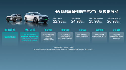 值得注意的是,目前傳祺ES9的預(yù)售仍在繼續(xù),現(xiàn)在預(yù)訂傳祺ES9不僅享2萬(wàn)元置換補(bǔ)貼,在傳祺ES9上市前(含上市日),預(yù)訂用戶通過(guò)官方APP/小程序參與“ES9超級(jí)充電站”預(yù)售活動(dòng),可在車輛交付的時(shí)候獲得定制華為 Mate 60 Pro,超值權(quán)益,從置換、交車、用車、售后服務(wù)上為用戶全方位考慮。