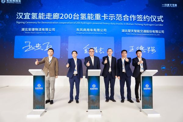 謀定而后動(dòng),興一域而利天下。在發(fā)布會(huì)中,東風(fēng)商用車有限公司、湖北楚天智能交通股份有限公司(下簡(jiǎn)稱“楚天高速”)、湖北安捷物流有限公司(下簡(jiǎn)稱“安捷物流”)簽訂漢宜氫能走廊200臺(tái)氫能重卡示范合作項(xiàng)目。