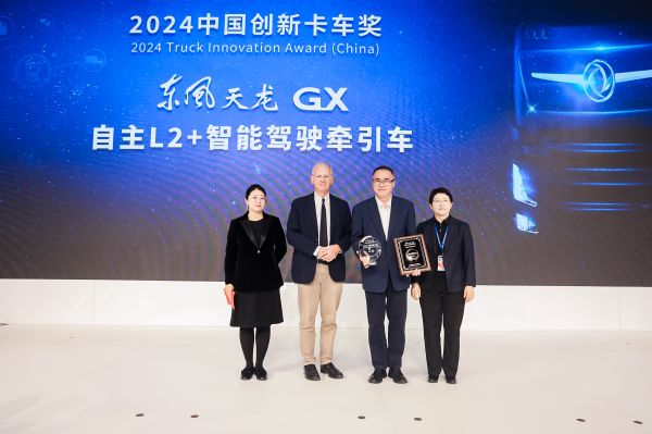 榮譽(yù)頒獎(jiǎng):東風(fēng)天龍GX自主L2+級(jí)智能駕駛牽引車獲“2024中國(guó)創(chuàng)新卡車”獎(jiǎng)