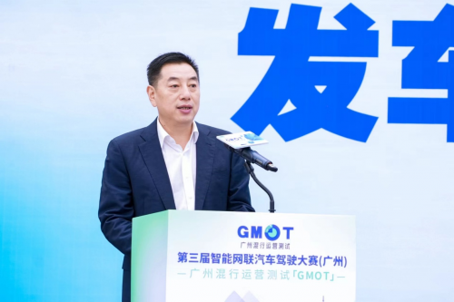11月12日上午,“第三屆智能網(wǎng)聯(lián)汽車駕駛大賽(廣州)廣州混行運(yùn)營測(cè)試【GMOT】”(以下簡稱“第三屆智能網(wǎng)聯(lián)汽車駕駛大賽〔廣州〕”)發(fā)車儀式在廣州市廣交會(huì)展館A區(qū)5.0廣場(chǎng)舉行。廣州市人民政府副秘書長、一級(jí)巡視員,廣州市工業(yè)和信息化局黨組書記、局長高裕躍應(yīng)邀出席并致辭;香港科技大學(xué)(廣州)機(jī)器人與自主系統(tǒng)學(xué)域系主任、自動(dòng)駕駛技術(shù)中心主任劉明,小馬智行集團(tuán)副總裁莫璐怡分別作為大賽評(píng)審委員會(huì)代表、參賽企業(yè)代表出席并發(fā)表宣言。大賽評(píng)審委員會(huì)委員、部分企業(yè)嘉賓及代表,近30家資訊媒體出席了本次發(fā)車儀式。
