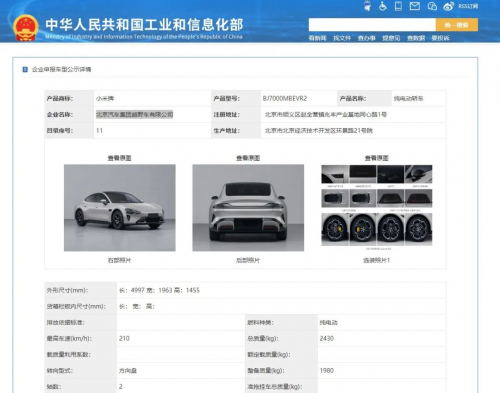 隨著工信部公布第377批公告發(fā)布,小米汽車(chē)終于露出了真容??吹叫∶灼?chē)外觀圖片后,有網(wǎng)友表示其外形側(cè)面類(lèi)似保時(shí)捷卡宴,并稱其為“保時(shí)米”。