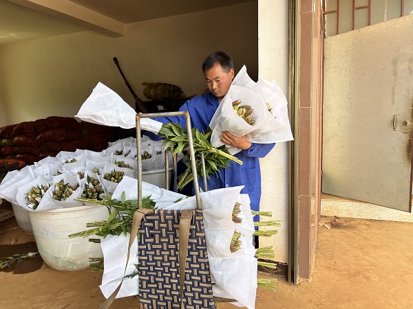在施挎所的花場,滿園的百合花含苞待放,長勢喜人,記者見到施挎所時(shí),他與妻子二人正忙著采摘、挑貨、打包、裝車……每年10月,都是鮮花銷售的高峰期。這時(shí)的他,每天都忙于向昆明花卉市場運(yùn)送新鮮花卉。據(jù)施挎所介紹,所種植的百合是分批種植的,好處在于能夠延長收割時(shí)間,可以確?;ɑ艿男迈r度?!拔覀兯诘奈恢玫靥幐呱剑话闶菑拿磕?月開始分批種植,那時(shí)的天氣比較適宜種植百合。一直持續(xù)到10月下旬,天氣轉(zhuǎn)涼,我們就開始休假了?!?/p>