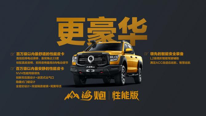 11月17日,大型高性能豪華皮卡——山海炮性能版廣州車展正式上市,官方指導(dǎo)價(jià)27.98萬元,并為用戶帶來萬元置換、4年不限次數(shù)全路況救援、山海居5折購買權(quán)益等7重大禮!