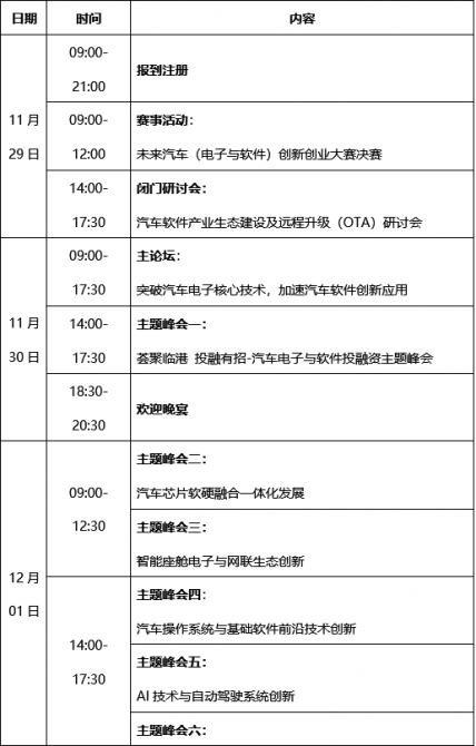 “一會(huì)”包括 “1+1+6”:1場(chǎng)閉門研討會(huì),即汽車軟件產(chǎn)業(yè)生態(tài)建設(shè)及遠(yuǎn)程升級(jí)(OTA)研討會(huì);1場(chǎng)主論壇,即突破汽車電子核心技術(shù),加速汽車軟件創(chuàng)新應(yīng)用;6場(chǎng)主題峰會(huì),包括薈聚臨港 投融有招-汽車電子與軟件投融資主題峰會(huì)、汽車芯片軟硬融合一體化發(fā)展、智能座艙電子與網(wǎng)聯(lián)生態(tài)創(chuàng)新、汽車操作系統(tǒng)與基礎(chǔ)軟件前沿技術(shù)創(chuàng)新、AI技術(shù)與自動(dòng)駕駛系統(tǒng)創(chuàng)新、智能底盤電子與集成技術(shù)創(chuàng)新。