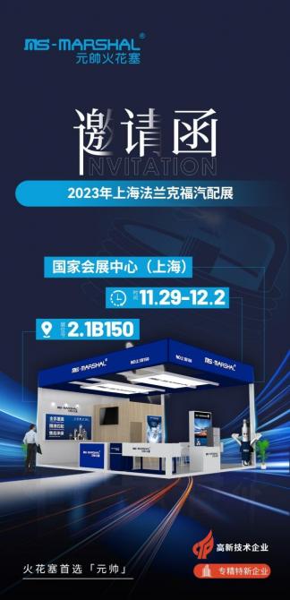11月29日至12月2日,上海法蘭克福汽配展將在國家會(huì)展中心(上海)隆重舉行,元帥火花塞誠邀您共襄盛會(huì)!