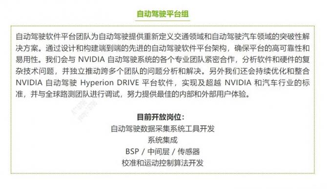 據(jù)介紹,英偉達(dá)自動(dòng)駕駛團(tuán)隊(duì)的使命是為自動(dòng)化和自動(dòng)駕駛車輛設(shè)計(jì)、創(chuàng)建和部署最安全、最先進(jìn)的人工智能驅(qū)動(dòng)系統(tǒng)。工作涵蓋多種運(yùn)輸形式,從乘用車到商用車再到機(jī)器人出租車。從同時(shí)訓(xùn)練和測(cè)試人工智能的數(shù)據(jù)中心,到實(shí)時(shí)進(jìn)行數(shù)據(jù)處理的車輛,安全是第一要?jiǎng)?wù)。NVIDIA DRIVE 生態(tài)系統(tǒng)包括數(shù)百家汽車制造商、卡車制造商、班車公司、一級(jí)供應(yīng)商、傳感器制造商、軟件公司、地圖公司和初創(chuàng)公司。