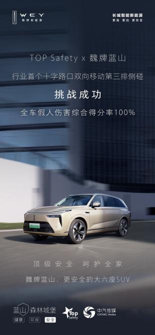 在中汽研TOP Satety進(jìn)行的行業(yè)首個(gè)「雙向移動(dòng)第三排側(cè)碰」挑戰(zhàn)中,藍(lán)山以全車假人傷害綜合得分率100%,達(dá)成三排乘員零傷害的成績(jī)順利通過(guò),藍(lán)山的超“鋼”安全,獲得權(quán)威機(jī)構(gòu)認(rèn)證。