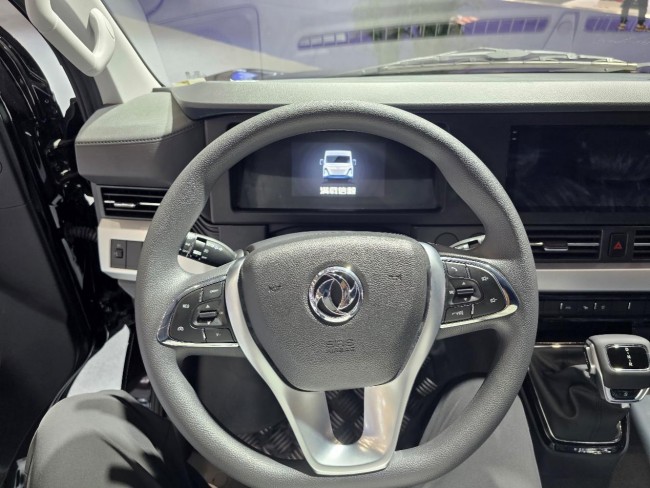 駕駛員工作區(qū)域,多功能方向盤與液晶儀表盤均采用東風(fēng)輕型車家族化設(shè)計(jì),方向盤帶有定速巡航和多媒體控制功能,液晶儀表則集成有車輛電壓顯示、電機(jī)溫度顯示等新能源車型重要觀察信息。為了進(jìn)一步保障駕駛員的安全性,東風(fēng)御風(fēng)V9E還標(biāo)配主駕駛安全氣囊,發(fā)生碰撞時(shí)降低對駕駛員的傷害。