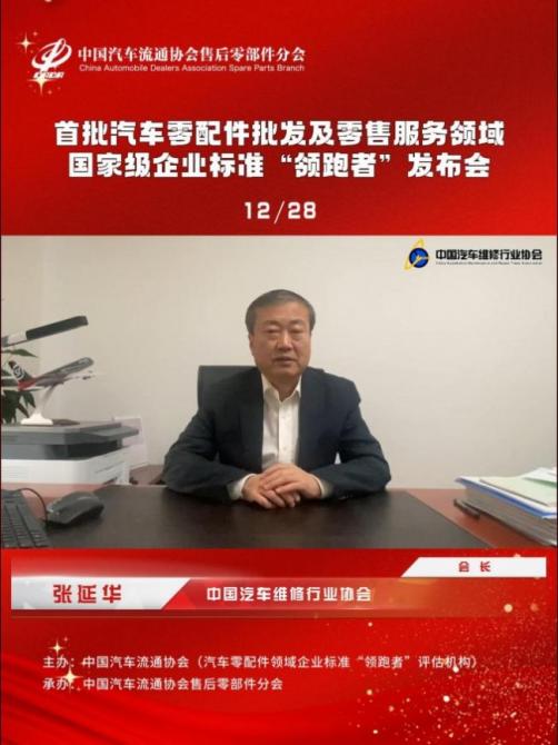 12月28日,由中國汽車流通協(xié)會(huì)主辦、中國汽車流通協(xié)會(huì)售后零部件分會(huì)承辦的首批汽車零配件服務(wù)領(lǐng)域國家級企業(yè)標(biāo)準(zhǔn)“領(lǐng)跑者”發(fā)布會(huì),以售后零部件分會(huì)視頻號直播的方式舉行,來自國家部委、行業(yè)協(xié)會(huì)、主機(jī)廠、汽車經(jīng)銷商、汽車零配件等領(lǐng)域的領(lǐng)導(dǎo)和嘉賓齊聚線上,共同見證首批汽車零配件批發(fā)服務(wù)、汽車零配件零售服務(wù)國家級企業(yè)標(biāo)準(zhǔn)“領(lǐng)跑者”正式發(fā)布!