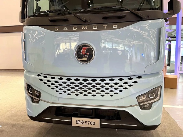 延安重卡S700涂裝主要有延安紅、星月藍、冰川白等顏色。配有整體式低風阻前面罩和參數(shù)化仿生保險杠,中間帶有會發(fā)光的品牌LOGO。低風阻設計的整車外觀配合無級可調的頂部導流罩,使整車風阻表現(xiàn)優(yōu)秀,這有助于長途高效運輸?shù)娜加徒?jīng)濟性。