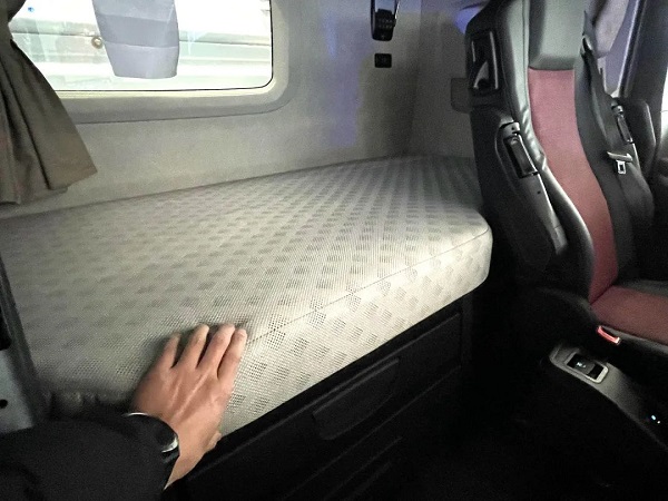 舒適性方面,延安重卡S700配有帶通風加熱功能的氣囊座椅。長途運輸不少卡友經(jīng)常需要住在車上,延安重卡S700臥鋪寬度和厚度都是非常不錯的。帶有柴暖,標配重卡專用鋰電,配合變頻頂置空調,讓你睡覺吹空調不再焦慮。2500W大功率逆變器更可以充分滿足用電需求,此外還可選裝冰箱和飲水機。