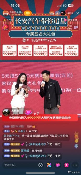 梁漢文空降直播間與粉絲網(wǎng)友溫情互動(dòng),帶來(lái)超高人氣,釋放長(zhǎng)安汽車驚爆福利,政策力度空前來(lái)襲。