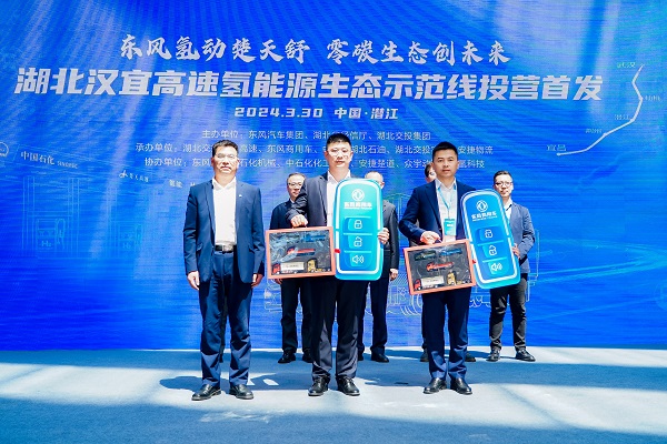 東風(fēng)氫動(dòng)楚天舒,零碳生態(tài)創(chuàng)未來。3月30日,一場標(biāo)志著我國氫能產(chǎn)業(yè)邁向商業(yè)化新階段的盛會(huì)在湖北滬渝高速潛江服務(wù)區(qū)北區(qū)隆重舉行。東風(fēng)商用車攜手湖北省交通投資集團(tuán)有限公司(簡稱“湖北交投”)共同打造的漢宜氫能示范線正式啟動(dòng)。湖北省政府副秘書長、參事室主任趙俊,東風(fēng)汽車集團(tuán)有限公司總經(jīng)理助理、東風(fēng)商用車有限公司董事長周先鵬,湖北交通投資集團(tuán)有限公司黨委副書記、總經(jīng)理葉戰(zhàn)平,湖北省經(jīng)濟(jì)和信息化廳黨組成員、總工程師盛章學(xué),中國石化湖北石油分公司黨委書記、分公司代表于海平,省國資委黨委委員、副主任周勇士,中國汽車工程學(xué)會(huì)會(huì)士、武漢理工大學(xué)汽車工程學(xué)院院長、學(xué)科首席教授顏伏伍,湖北省潛江市市委書記盛文軍,湖北省財(cái)政廳二級巡視員劉成安,湖北省商務(wù)廳二級巡視員劉道偉,湖北省交通廳道路事業(yè)發(fā)展中心黨委書記、主任曹翃,湖北省襄陽市政府黨組成員張斌,湖北省荊州市副市長李敢,湖北省隨州市政府黨組成員劉軍偉,湖北省仙桃市副市長胡軍波,東風(fēng)商用車有限公司總經(jīng)理張小帆等領(lǐng)導(dǎo)出席活動(dòng),共同見證這一具有里程碑意義的歷史時(shí)刻。