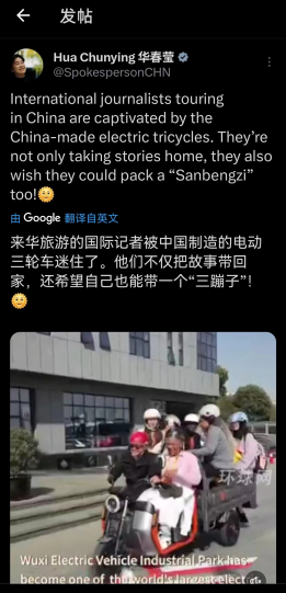 “在中國旅行的國際記者們已經(jīng)被中國制造的電動自行車迷住了。他們不僅把故事帶回了家,還希望能帶一個三蹦子回去!”中國外交部華春瑩女士在推特個人賬號上分享了 2024“走讀中國”活動中國際媒體團(tuán)到訪雅迪、體驗雅迪產(chǎn)品的相關(guān)視頻,并對雅迪表示認(rèn)可。
