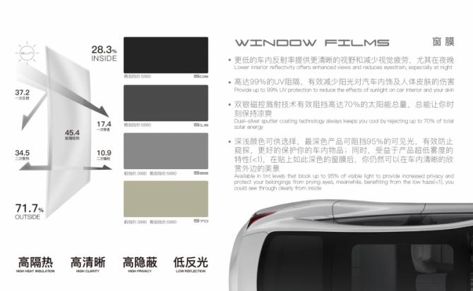 其中,高端隔熱膜產(chǎn)品在國內(nèi)市場增速更遠(yuǎn)高于中低端產(chǎn)品,但其高昂的價(jià)格卻顯得有些“高不可攀”。目前市面上的高端進(jìn)口隔熱膜產(chǎn)品的隔熱性、反光性以及私密性都兼顧的較好,不過由于品牌定位、形象包裝以及市場策略等因素的影響,售價(jià)也是普通產(chǎn)品的5-10倍,使得很多普通消費(fèi)者望而卻步,無法體驗(yàn)高品質(zhì)汽車隔熱膜的使用效果,在“苦不堪言”的同時(shí),市場也釋放出對(duì)于高性價(jià)比高端汽車隔熱膜產(chǎn)品的強(qiáng)勁需求。