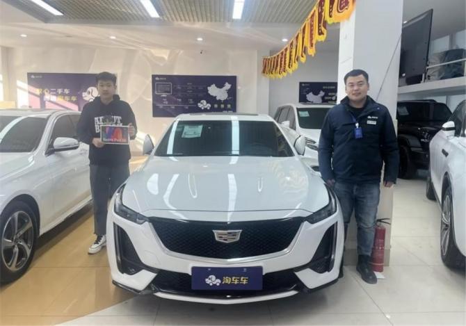 淘車車長春店銷售顧問孫雨(右)給客戶交車