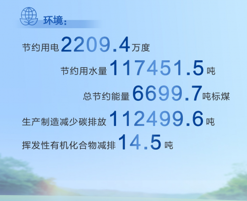 生產(chǎn)制造減少二氧化碳排放量112499.6噸,揮發(fā)性有機(jī)化合物(VOC)減排量14.5噸;