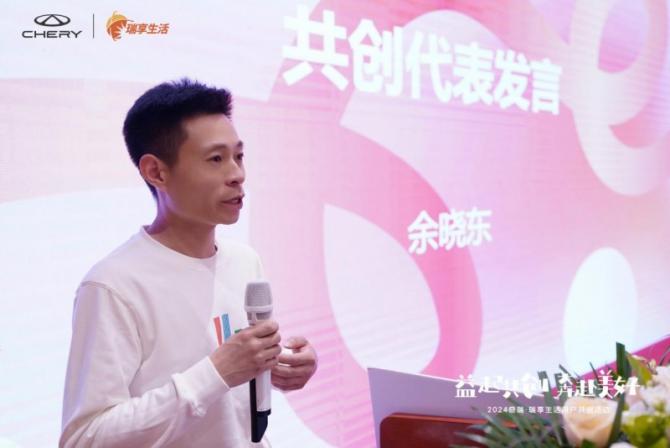 會(huì)上,用戶共創(chuàng)官余曉東先生向大家講述了他11年來始終堅(jiān)定選擇奇瑞汽車的緣由——“相信奇瑞品牌,一直為老百姓造買得起的國(guó)民好車”。此外,還分享了他在2023年參與iCAR03潮改計(jì)劃的心得。他表示,在這些共創(chuàng)活動(dòng)中,真切地體會(huì)到奇瑞始終以用戶為中心的目標(biāo),期待未來能與奇瑞共赴美好前程。