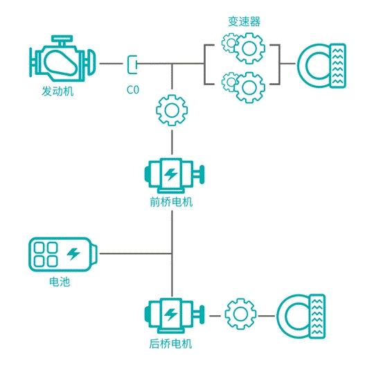 在應(yīng)用了Hi4技術(shù)架構(gòu)的產(chǎn)品中,車輛前軸由1.5L/1.5T高功率混動(dòng)專用發(fā)動(dòng)機(jī)、發(fā)電驅(qū)動(dòng)一體電機(jī)和多擋混動(dòng)專用變速器共同發(fā)力,后軸則由一臺(tái)高效驅(qū)動(dòng)電機(jī)提供動(dòng)力,并進(jìn)行能量回收。這種動(dòng)力源雙軸分布的混動(dòng)全新構(gòu)型,不僅實(shí)現(xiàn)了串并聯(lián)四驅(qū)的電混架構(gòu),更在不受機(jī)械結(jié)構(gòu)制約的情況下,實(shí)現(xiàn)了四驅(qū)功能的自由應(yīng)用。