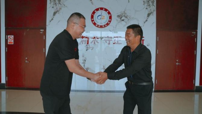 三頭六臂品牌總監(jiān)焦士良(左),廣饒縣啟慧教育學(xué)校校長(zhǎng)韓志剛(右)