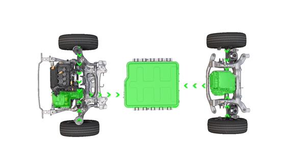 市區(qū)低速行駛時,根據(jù)車輛油門深度和速度在純電兩驅(qū)、串聯(lián)模式間智能切換;市區(qū)急加速或爬坡時,在純電四驅(qū)、1擋直驅(qū)模式間智能切換;高速巡航工況時,2 擋直驅(qū)模式讓發(fā)動機(jī)在最高效區(qū)間工作;高速加速或爬坡工況時,發(fā)動機(jī)在最高效區(qū)間工作,在并聯(lián)兩驅(qū)和并聯(lián)四驅(qū)之間智能切換,剩余功率由電池提供;減速制動工況時,在單軸回收、雙軸回收模式間智能切換。再結(jié)合智能能量管理系統(tǒng)來降低能耗,讓2024款哈弗猛龍真正做到“全工況效率最優(yōu),全場景駕駛無憂”。