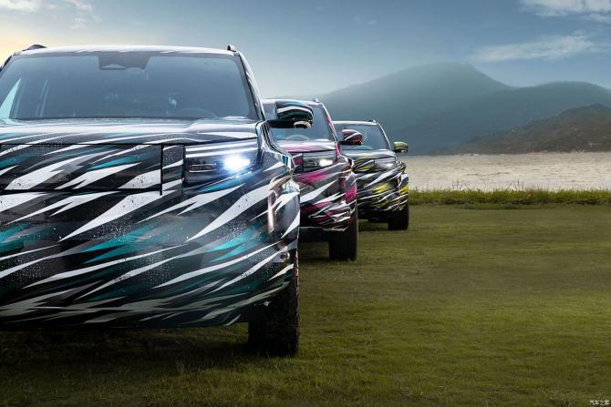 此次諜照中展示了三臺車,分別代表三種不同的版本。從諜照可以看出,新車的前大燈與格柵設(shè)計與此前發(fā)布的SUPER 3概念車比較相似,中網(wǎng)預(yù)計是封閉式格柵,兩側(cè)疑似擁有粗壯的飾條裝飾。按照此前曝光的宣傳片,它會擁有貫穿式的燈組。新車的前包圍進行了嚴格偽裝,從輪廓開看會采用梯形元素,增強時尚感。