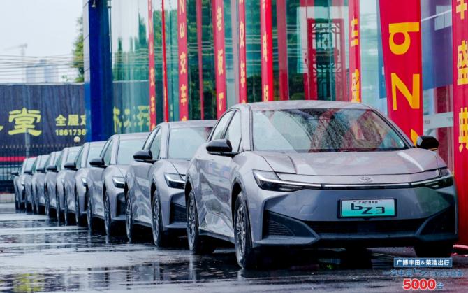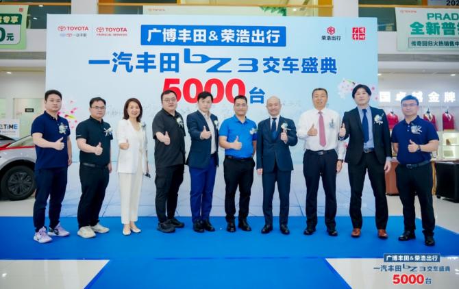 6月3日,榮浩出行與廣博豐田共同在廣州舉辦了一場盛大的5000臺豐田bZ3集中交付儀式?;顒蝇F場,嶄新的豐田bZ3整齊排列,吸引了眾多行業(yè)領袖和媒體記者的目光。在他們的共同見證下,5000臺嶄新的豐田bZ3順利完成交付。