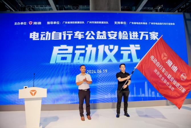 在此次消防安全活動(dòng)聯(lián)合啟動(dòng)會(huì)現(xiàn)場,廣州市電動(dòng)自行車行業(yè)協(xié)會(huì)執(zhí)行會(huì)長兼秘書長黃煥杰表達(dá)了對雅迪為用戶生命財(cái)產(chǎn)安全做出的行動(dòng)的認(rèn)可并為之授旗。在他看來,雅迪作為電動(dòng)兩輪車行業(yè)領(lǐng)軍企業(yè),率行業(yè)之先,倡導(dǎo)安全出行的公益舉措值得肯定。本次安全公益活動(dòng)有了雅迪的參與,也可以帶來更多的利民舉措。