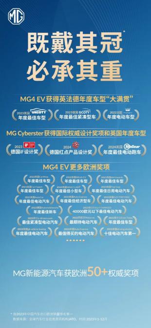 在歐洲市場,上汽MG的表現(xiàn)可謂搶眼。據(jù)統(tǒng)計,2023年前五個月,MG品牌在歐洲的終端交付量超過10萬輛,創(chuàng)下歷史新高,凸顯了其在歐洲市場的強大競爭力和廣泛影響力。MG品牌不僅在歐洲消費者心中建立了堅實的口碑,更以其卓越的品質(zhì)和技術(shù)創(chuàng)新贏得了市場的廣泛認可。MG4 EV作為明星車型,不僅在銷量上領(lǐng)先,還在歐洲緊湊型純電動車市場中屢獲殊榮,展現(xiàn)了中國品牌在國際舞臺上的實力。